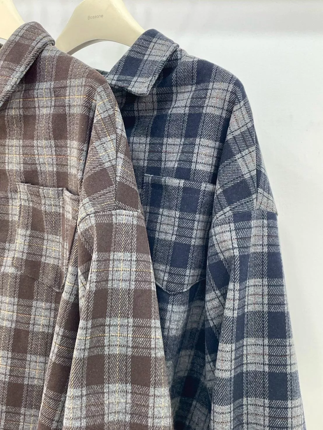 短版毛呢格紋襯衫